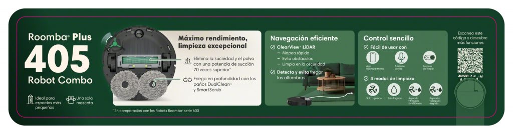 Roomba Combo 405 Plus + Base AutoWash – Limpieza total, sin levantar un dedo