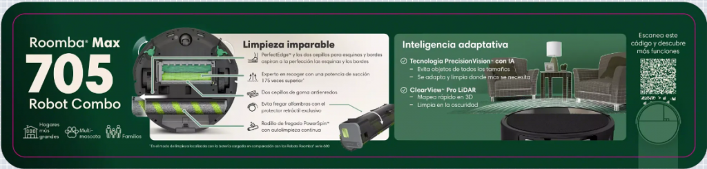 Roomba Combo 705 Max – Más que limpiar, es cuidar tu hogar